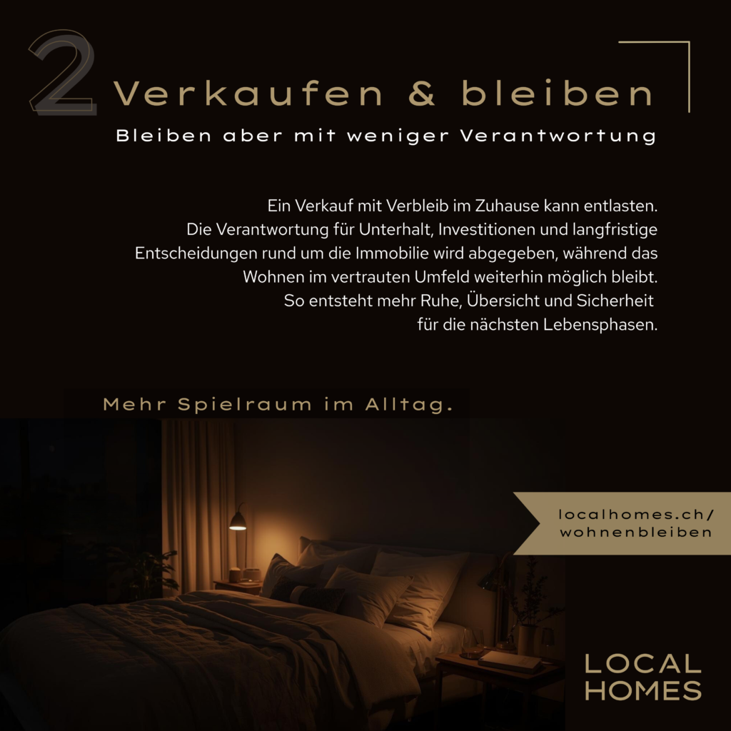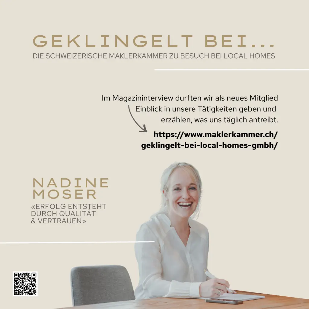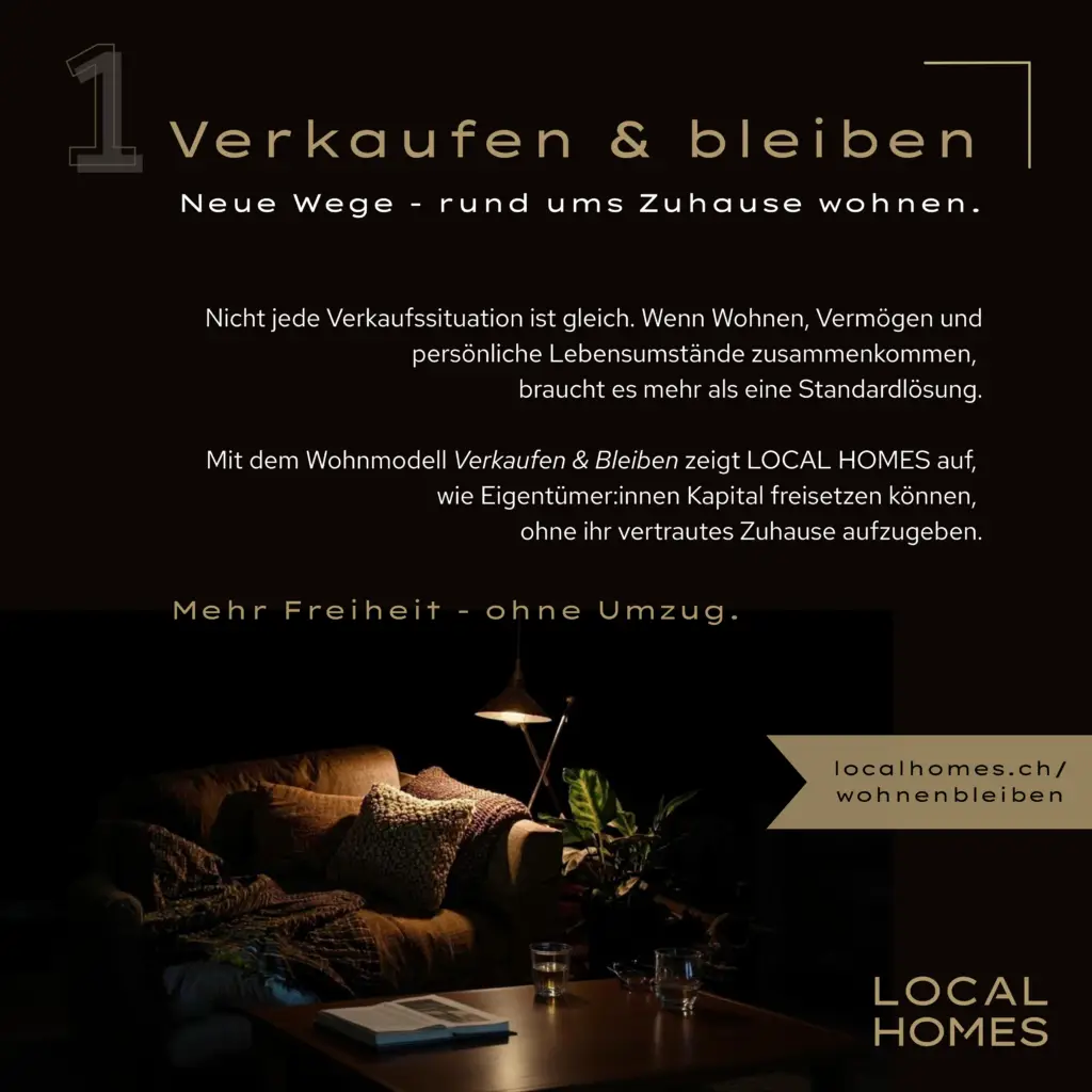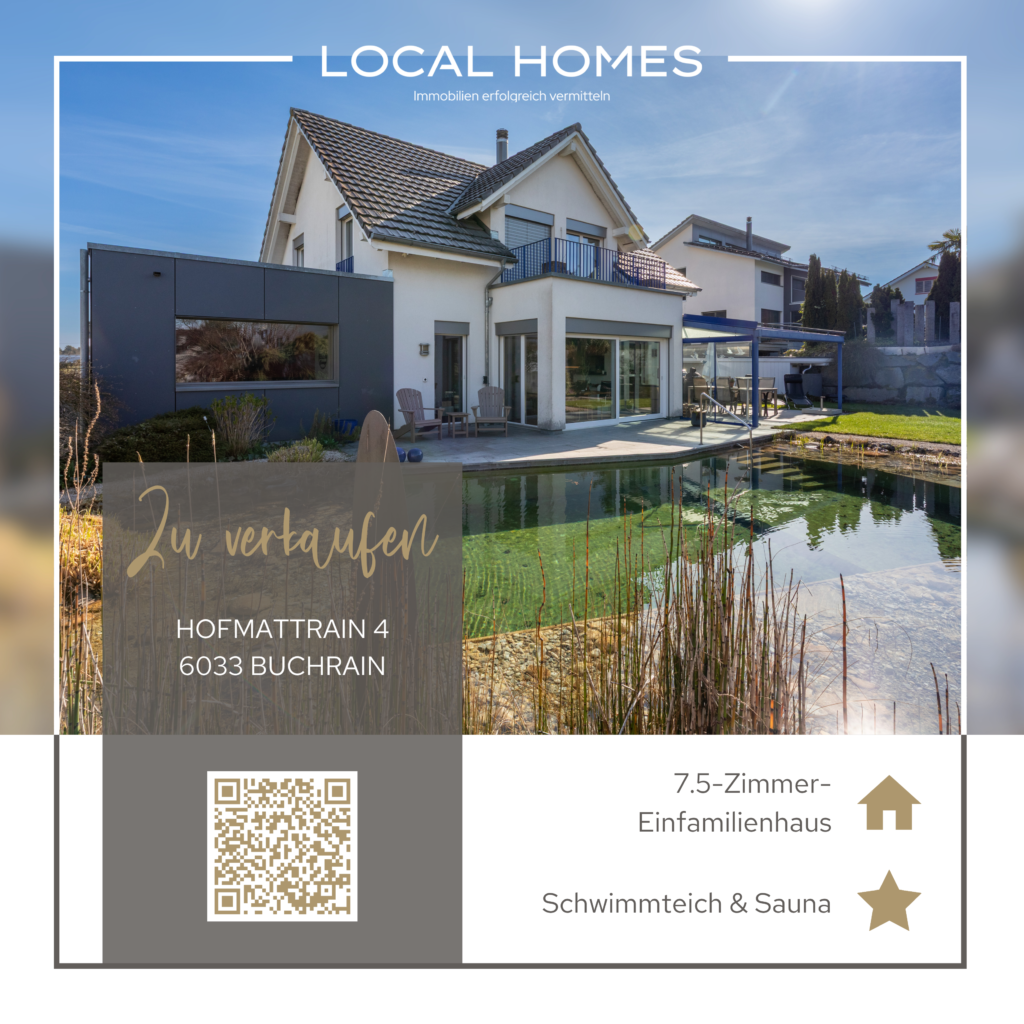 Immobilien verkaufen sich am besten mit Transparenz, Vertrauen und qualitativer Beratung. Auf LOCAL HOMES können Sie sich verlassen: Wir machen unsere Arbeit professionell, mit Herzblut und stets mit den Interessen unserer Kunden an erster Stelle. Wir stehen Ihnen zur Seite, wenn Sie Ihre Immobilie verkaufen möchten – vom Verkaufsentscheid den ganzen Weg bis hin zur erfolgreichen Schlüsselübergabe. Dabei arbeiten wir mit hochwertigen Verkaufsdokumentationen, ergänzt mit den modernsten Vermarktungstools wie 3D-Rundgänge oder Virtual Staging, um Ihre Immobilie im schönsten Licht zu präsentieren.