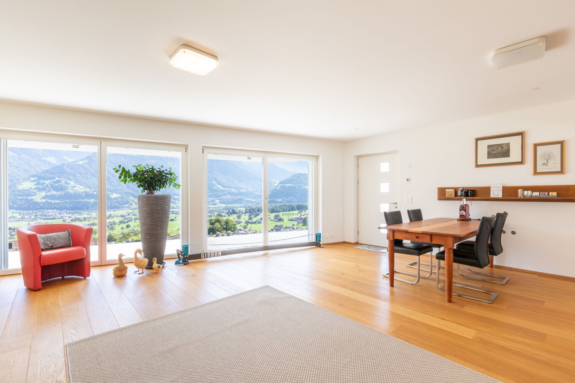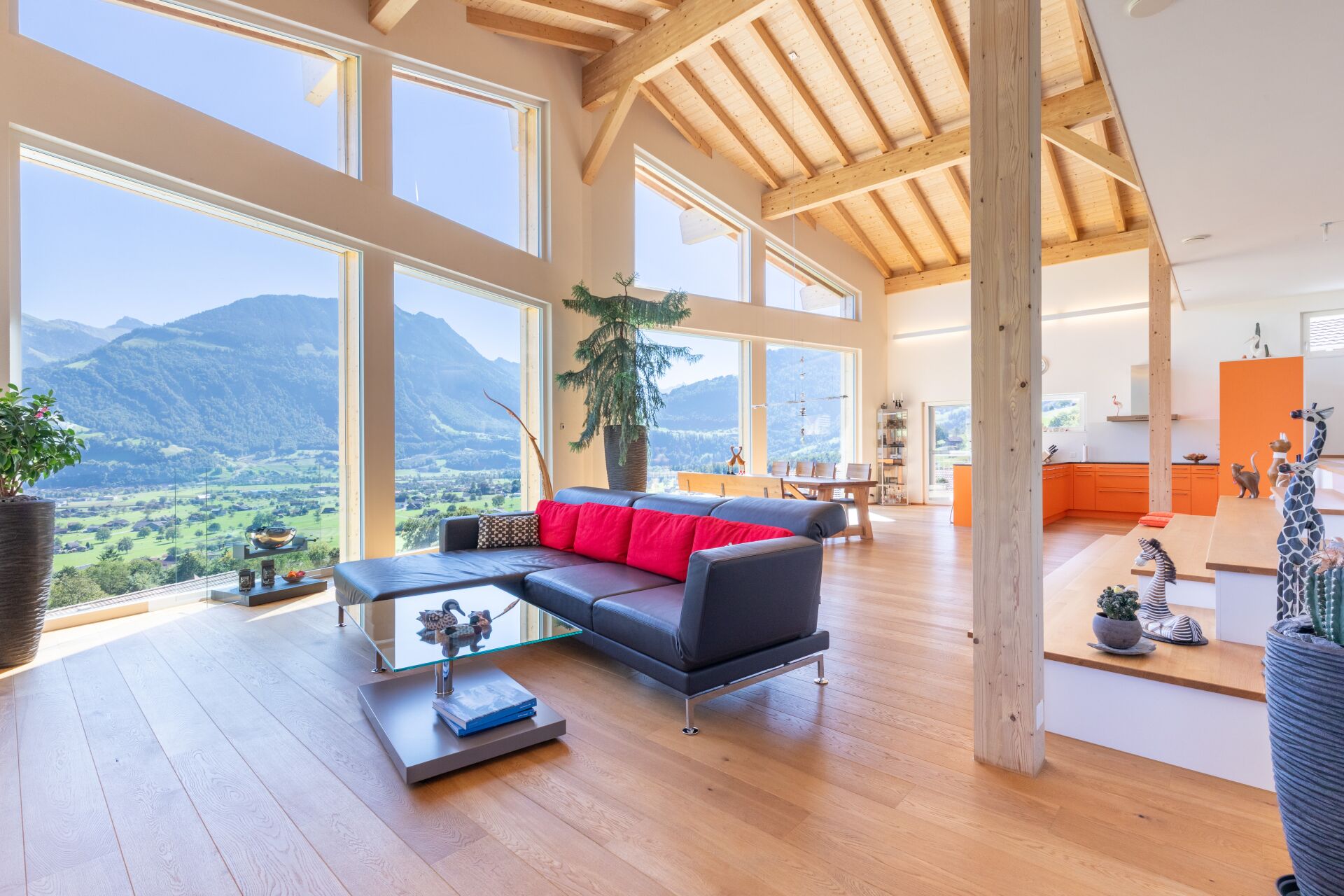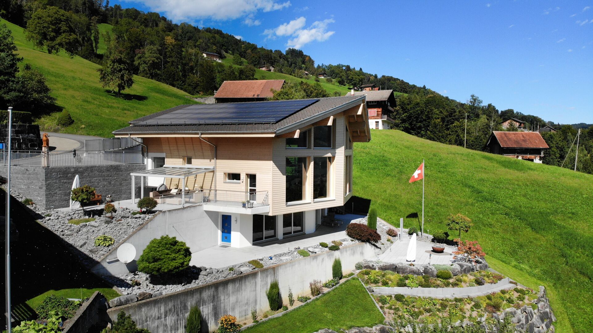 Dieses aussergewöhnliche Haus vereint höchste Energieeffizienz mit modernstem Wohnstandard und einem Raumgefühl, das beeindruckt. Das Passivhaus wurde nach Minergie-P Standard erbaut und überzeugt durch eine nachhaltige Bauweise, hochwertige Materialien und eine durchdachte Architektur mit sehr hohen Räumen, die eine einzigartige Atmosphäre schaffen. Die Komfortlüftung mit integriertem Wärmetauscher sorgt das ganze Jahr über für ein ideales Raumklima. Dank PV-Anlage, einem 6'000-Liter-Regenwassertank (für WC-Spülung, Garten und Wäsche) sowie intelligenter KNX-Hausautomation ist das Haus technisch auf dem neusten Stand und bietet sowohl ökologisch als auch funktional höchsten Komfort.
