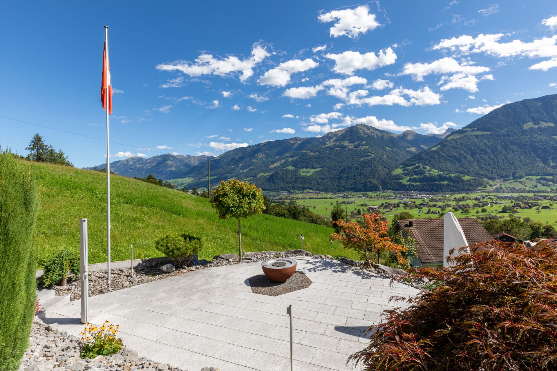 Der Aussenbereich wurde mit viel Liebe zum Detail gestaltet und überzeugt durch natürliche Materialien und stilvolle Akzente: Naturstein, gepflegter Garten, eine Feuerschale für stimmungsvolle Abende - und nicht zuletzt der atemberaubende Panoramablick, der jeden Tag besonders macht. Eine Doppelgarage rundet das Angebot ab.